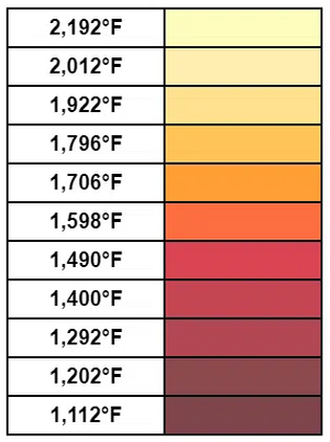 Tempering colors are different from the colors that heating steel for forging (or other forms of heat treating) causes. These are always shades of red, orange, and yellow because they’re above the critical (or transformation) temperature that makes the metal glow from the heat. Forging colors are as follows: